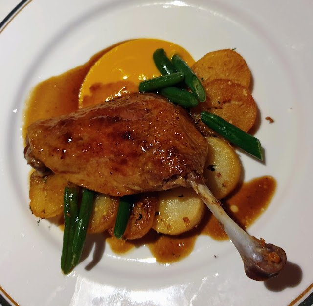 The Beignets are perfectly fried but lack the sweet crab flavour that would make them more than a good cheese pakoda. In fact, when I cut one in half, it had barely any crab at all. The Duck Confit arrives without the crisp skin that makes the dish special. The duck had alas not been cooked enough, probably 30 minutes more in the fat would have made the duck really unctuous. A dish named Carrots! is brilliant in concept and well-executed but tastes boring and one dimensional because the carrots used by the restaurant need more than just clever technique to shine.