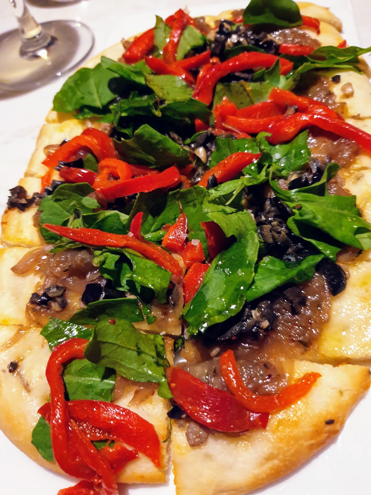 A glimmer of an answer is given when the Pissaladiere hits out table. A Pissaladiere is a classic flatbread from the South of France which is topped with caramelised onions, anchovies and Niçoise (black) olives. What arrives at our table is a flatbread with a small amount of caramelised onion, roast red peppers, some green leaves and olives! What on earth is this pizzaish thing? All four of us sit looking at it in fair bewilderment till restaurant manager Anand takes one look at us and shrugs apologetically saying ‘that’s what our customers will eat’.